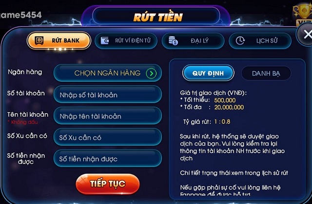 Bạn thực hiện chuyển đổi xu thưởng sang tiền mặt trong Tổng quỹ rồi rút tiền theo các hình thức sau: