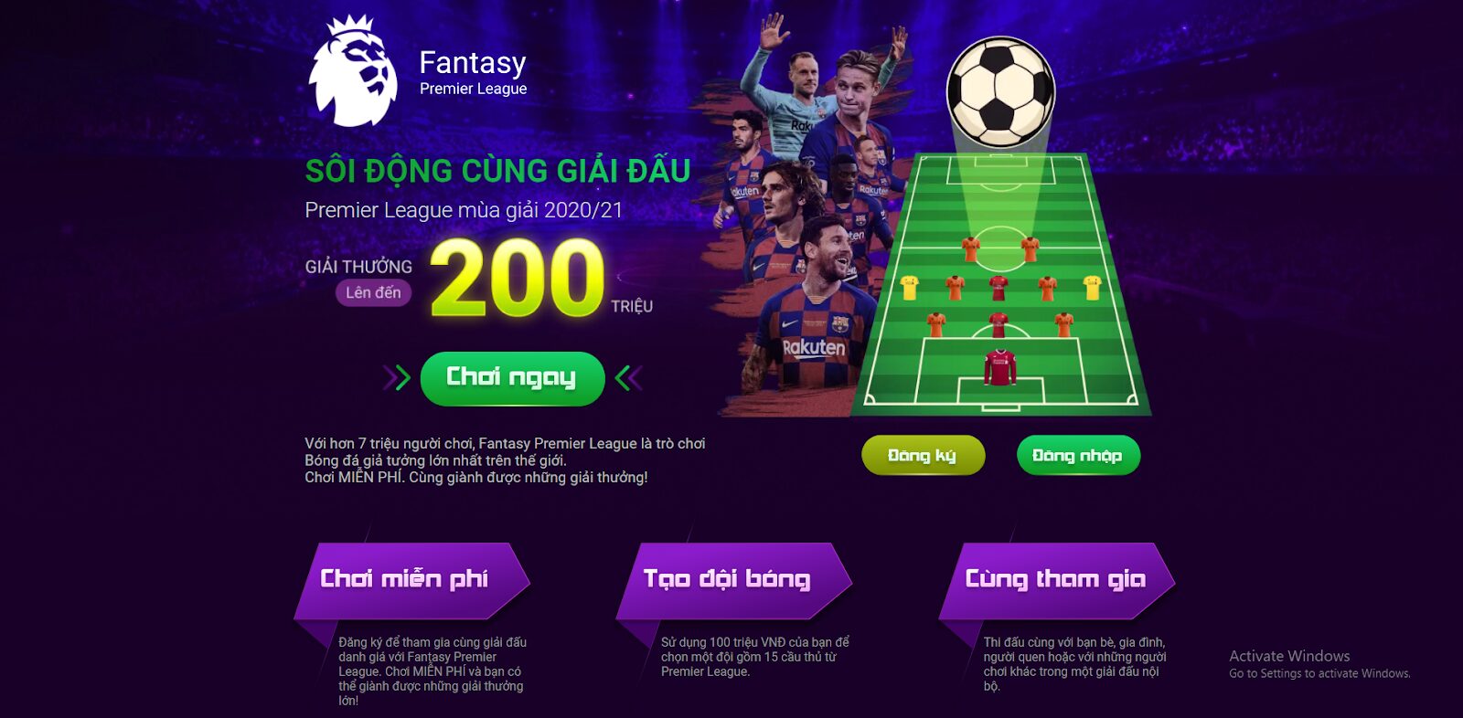 Nếu như bạn cảm thấy còn quá khó hiểu với phiên bản tiếng Anh của trò chơi, thì đừng lo, giờ đây Fantasy Premier League đã có phiên bản dành riêng cho người chơi Việt Nam, với tổng giải thưởng vô cùng hấp dẫn cho người chơi xuất sắc nhất.