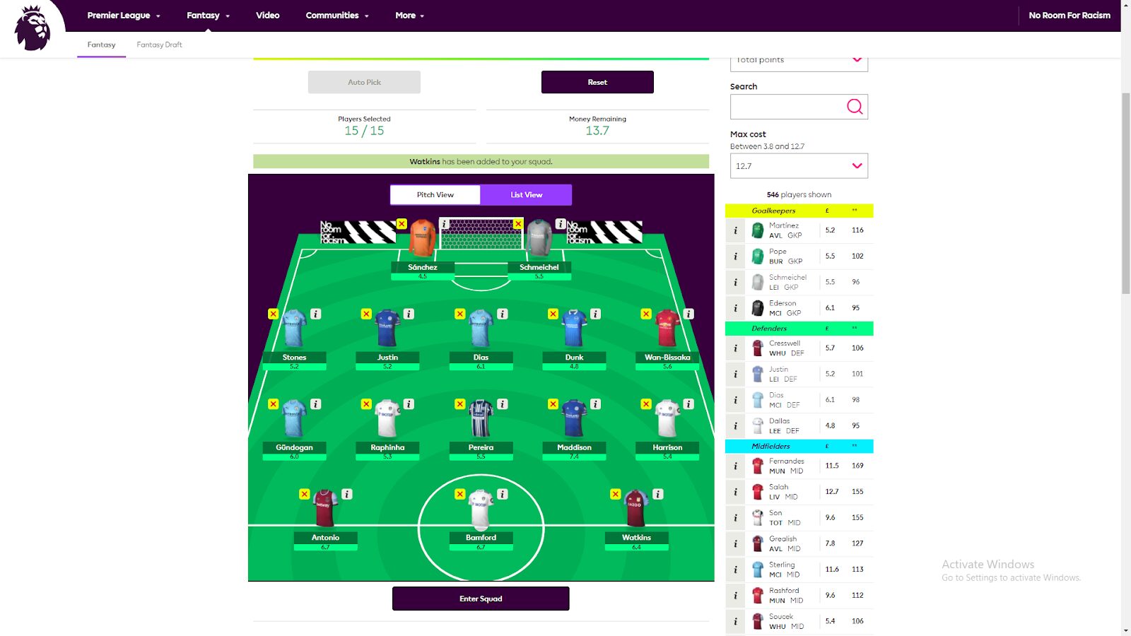 Hoặc nếu bạn chưa biết bắt đầu từ đâu, hệ thống của Fantasy Premier League sẽ tự động chọn cho bạn 1 đội hình bao gồm 15 người để bạn có thể tham khảo hay tùy chỉnh theo ý muốn. Hãy ấn vào nút “Auto Pick” để thực hiện thao tác này.