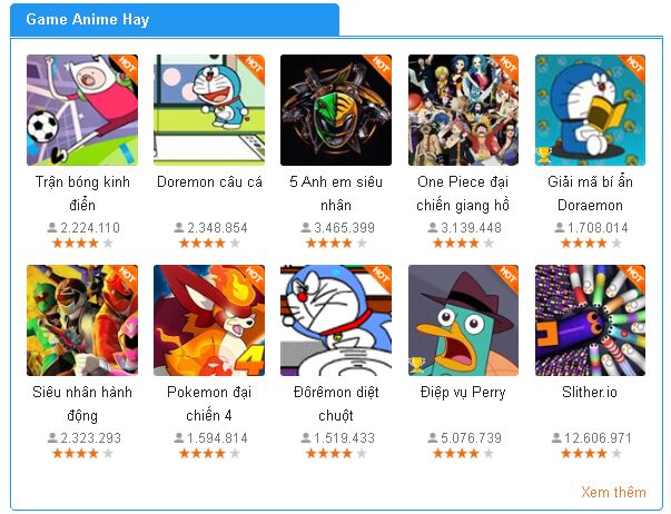 Loạt game anime nhân vật hoạt hình thú vị