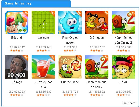 Chơi trò chơi Trí tuệ trên GameVui và thể hiện trí thông minh tuyệt vời! Với những game trí tuệ cực hay như Cờ caro, Cờ vua, Cờ triệu phú 2048, bạn tha hồ thỏa sức thể hiện tài năng của mình. Ngoài ra, nếu bạn muốn trải nghiệm thêm các game trí tuệ trực tuyến, bạn có thể lựa chọn trong số hơn 700 game thuộc thể loại này tại GameVui.