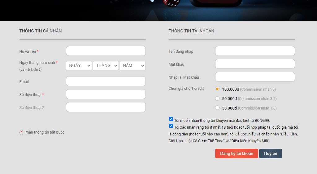 Đăng ký tài khoản tại nhà cái Bong99 bằng cách nào