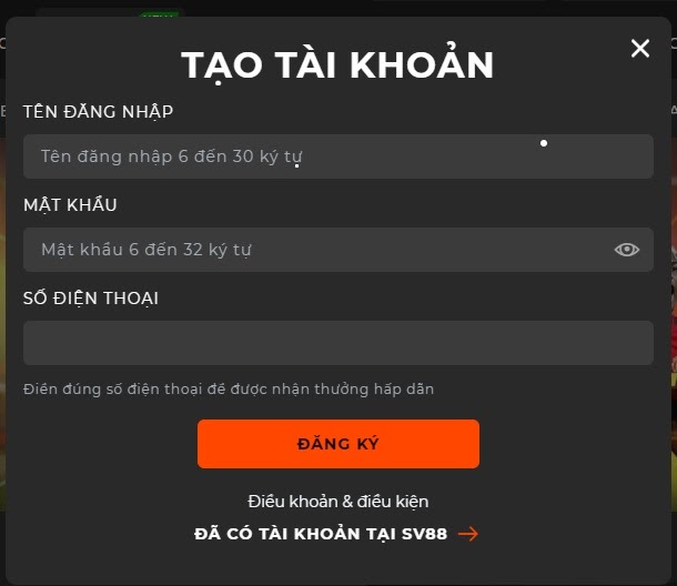 Đăng ký tài khoản tại Sv88