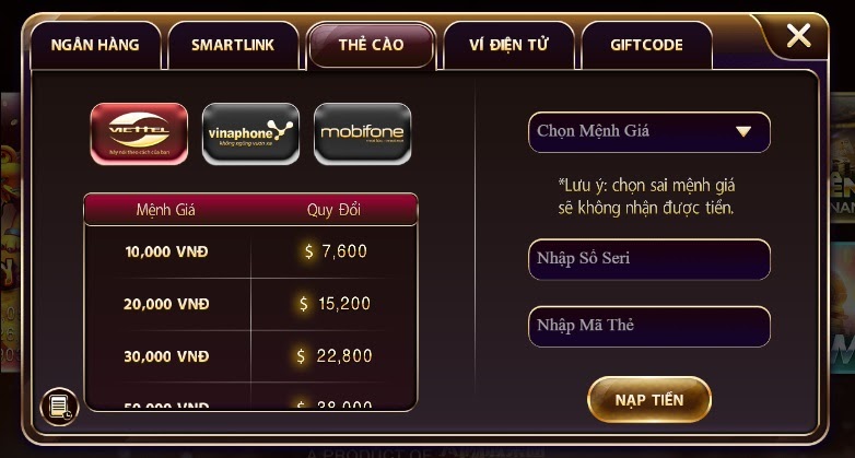Nạp tiền qua thẻ cào tại Nhất vip