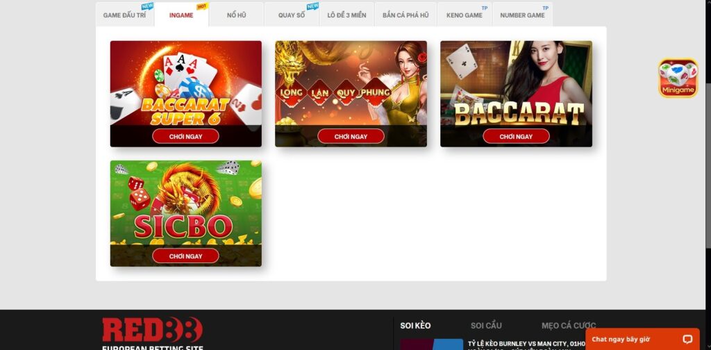 – Chẳng thể nào kiếm được chỗ nào có lượng game hot như ở Red88 được đâu các bro của tôi ơi, hiệu ứng hình ảnh phải nói là đẹp không thể chê vào đâu nhất là mấy em trong casino live phải nói là siêu mướt. Tài lộc thường nhảy lung tung theo cảm hứng bởi vậy càng nhiều trò càng dễ cho các bác phát tài, buồn buồn thì vào bắn máy bay xả stress biết đâu lại hốt được cái hũ.
