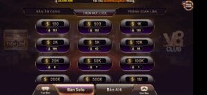 + Game bài online đổi thưởng: Hệ thống game bài của V8 Club vô cùng phong phú, đa dạng mức cược, mức chơi với nhiều lựa chọn như chơi full bàn hay chơi Solo … mỗi phương thức một điều thú vị. Những tựa game góp mặt ở thể loại game này cũng vô cùng đông đảo, có thể kể đến như Tiến lên miền Nam, Mậu Binh, Black jack, Liêng, xì tố, phỏm, sâm lốc, poker, baccarat, … mỗi game bài một quy luật, một cách thức nhưng đều đem đến sự thú vị riêng, không đơn thuần là giải trí mà còn là sự thi đấu đầy cam go, căng thẳng, là kỹ năng quan sát, phán đoán tình hình … có điều, giải thưởng thu về là thật, rất đáng để người chơi thử sức, lựa chọn.