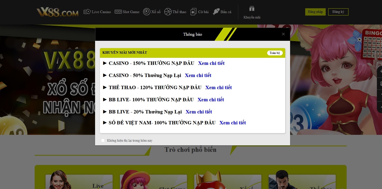 Rất nhiều anh em có sở thích giải trí lành mạnh muốn tìm một nơi để tung hoành nhưng không biết nơi đâu để gửi gắm đam mê thì hãy nở nụ cười khi xem bài viết này. Cũng chỉ là một người vô danh trong làng cày cuốc online kiếm gạo nhưng mình xin ngỏ lời mời anh em tới Vx88 chơi trò bắn cá. Trước hết là vì em nó đăng ký dễ ợt không cầu kỳ như gái mới lớn, lại có hệ thống thanh toán đầy đủ từ momo cho tới ngân hàng khiến cuộc vui càng thêm vui hơn. Cái game này tuy cũ nhưng nhà hấp dẫn vô cùng, nghĩ sao khi bắn bắn vài phát vào mông em tiên cá là nổ mẹ cái hũ khiến cái đít lại phải êm ái trên con SH hơn trăm củ là ít. Mình thì chẳng dám đặt niềm tin vào mấy chỗ linh tinh vả lại làm gì có nơi đâu có nhiều sự kiện mang tính chất giá trị thực như ở Vx88 cơ chứ.
