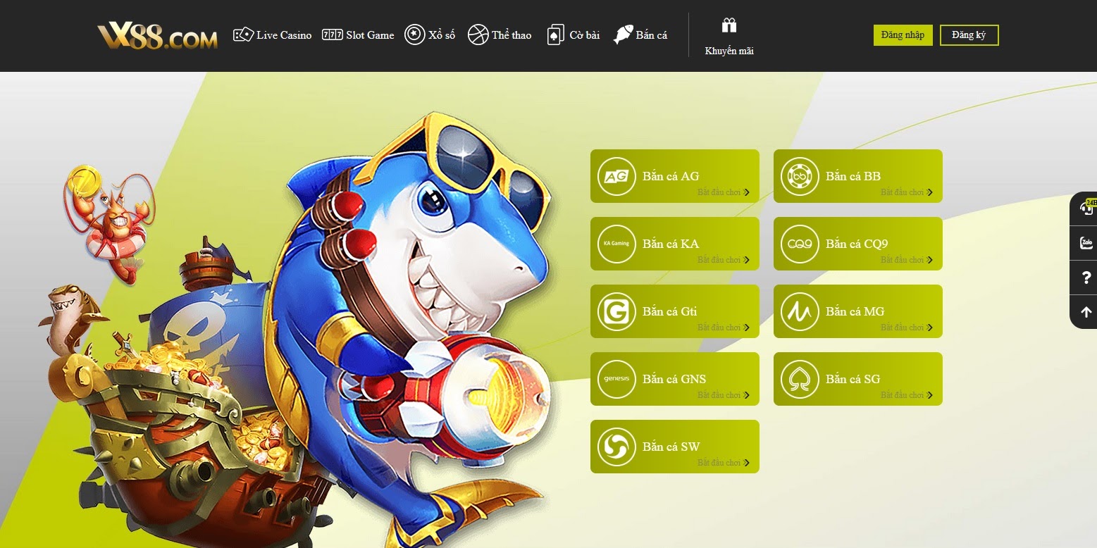 Đam mê bắn cá đổi thưởng mà anh em chưa thử qua cổng game Vx88 là một điều thiếu sót khá lớn nhé anh em, đây là một trong những địa điểm chơi bắn cá sầm uất và thu hút được đông đảo anh em tham gia nhất hiện nay. Mang một màu sắc riêng biệt, cộng thêm đó là hình thức ăn thưởng an toàn và uy tín, hứa hẹn mang đến cho anh em những trải nghiệm chơi game đáng đồng tiền bát gạo nhất.